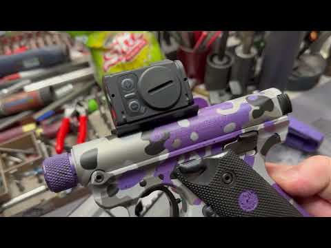 This video showcases custom firearm builds from MK3 Firearms, including Ruger MK-Os with ACRO optics and a custom Honey Badger rifle featuring a full-auto conversion. The builds highlight custom Cerakote applications in unique color schemes and themes, demonstrating advanced customization techniques for both pistols and rifles.