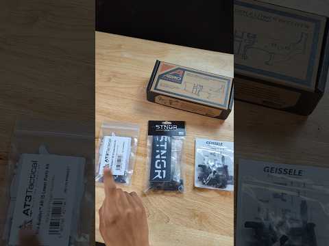 This video discusses lower parts kit options for an AR-15 build following a community vote. It presents three choices: the AT3 Tactical Mil-Spec kit, the upgraded Stinger kit with a trigger guard and ambidextrous safety, and the premium Guesley kit featuring an ambidextrous safety, enhanced bolt catch, and textured take-down/pivot pins for easier manipulation. Viewers are encouraged to vote for their preferred kit.