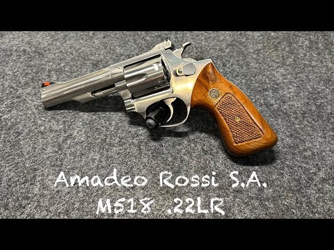 This review covers the Amadeo Rossi Model 518, a .22LR six-shot stainless revolver noted for its surprising build quality and tight lockup, often compared to Smith & Wesson J-frame and K-frame models. The presenter highlights its exceptional trigger pull and adjustable sights, suggesting it's a well-made budget option from a bygone era, likely produced using Smith & Wesson tooling during a period when Rossi, Taurus, and S&W shared a parent company.