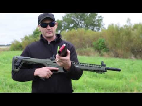 This video provides a hands-on look at the Panzer Arms AR12 semi-automatic shotgun in an OD Green finish. The demonstration covers key features like the adjustable cheek weld and flip-up sights, magazine loading, and a live-fire test showcasing its cycling and low recoil. The presenter, identified as Mike from D'Boss Firearms, exhibits safe handling and knowledge of the firearm's accessories.