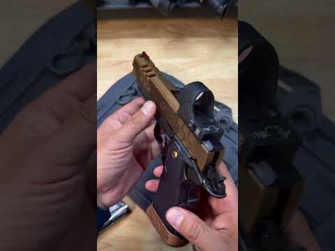 This video provides an in-depth look at the Kimber 2K11 'OI' variant, a double-stack 1911 featuring a Coyote PVD finish, all-steel construction, and a bull barrel. The 'OI' designation signifies 'Optic Included,' as it comes pre-installed with a Trijicon SRO. The review highlights the firearm's trigger characteristics, oversized magwell, and includes a demonstration of how to properly attach a weapon light using a crossbolt system to eliminate wobble. The presenter also showcases a custom gold Kydex holster designed for the firearm.